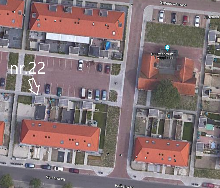 De reserve-sleutel van ’t Vogelnest bevindt zich in een kluisje. Dat is bevestigd aan de achterkant van een schuurtje van Valkenweg 22. Het schuurtje is bereikbaar vanaf het parkeerterrein achter de Valkenweg, dat ligt naast ’t Vogelnest. Onder het huisnummer op het schuurtje zit een kluisje. Als je de zijknoppen indrukt kun je het afdekklepje naar voren halen. Dan moet je de 4-cijferige code van het kluisje instellen, en dan kun je het kluisdeurtje openen om de sleutel te pakken. Daarna het kluisje weer dicht, de code verdraaien, en de klep weer sluiten.